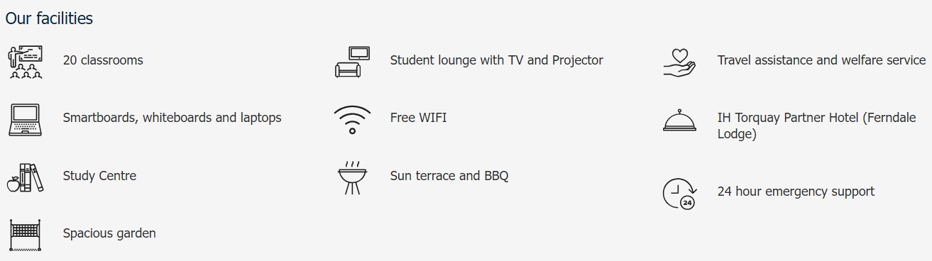 ยินดีต้อนรับทุกคนสู่ International House Torquay เป้าหมายของเราคือการทำให้ทุกคนที่เข้าร่วมหลักสูตรของ IH Torquay ได้รับประโยชน์สูงสุดและสนุกสนานไปกับการเข้าเรียนกับเรา เรามีความภูมิใจที่จะบอกว่านักเรียนและลูกค้าธุรกิจจำนวนมากของเรากลับมาที่โรงเรียนครั้งแล้วครั้งเล่าและแนะนำเราให้กับครอบครัว เพื่อน และเพื่อนร่วมงานของพวกเขา ตอนนี้เรากำลังต้อนรับนักเรียนจากรุ่นที่สามของครอบครัวบางครอบครัว