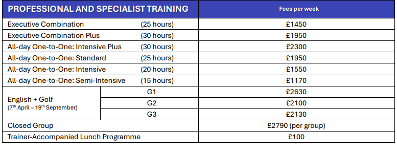 General English Course 30+ Courses Executive English Courses Cambridge Exams Preparation Courses IELTS Exampreparation Courses |
