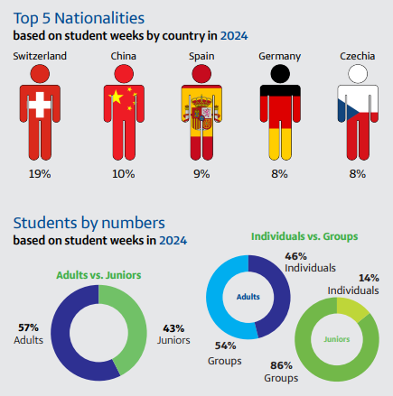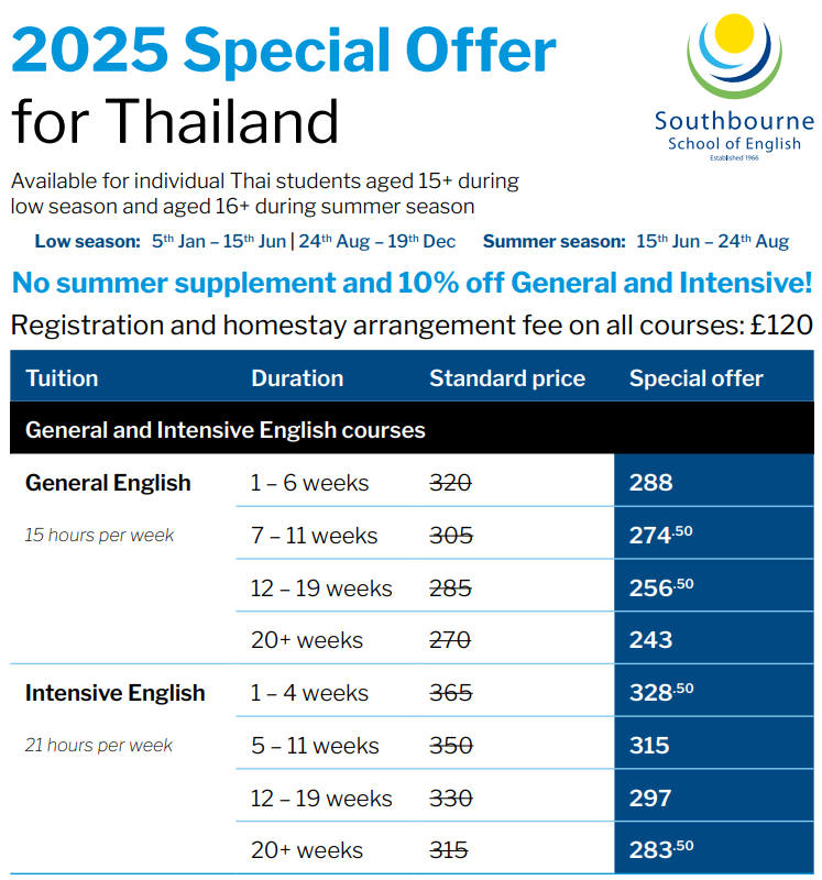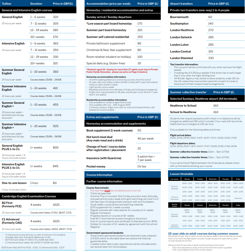 เราเป็นโรงเรียนสอนภาษาเอกชนที่สอนภาษาอังกฤษเป็นภาษาต่างประเทศ เราเป็นเจ้าของโดยครอบครัวที่ก่อตั้งโรงเรียนนี้ในปี 1966 ซึ่งหมายความว่าเราเข้าใจดีว่านักเรียนต้องการอะไรเพื่อให้ประสบความสำเร็จในการเรียนที่สหราชอาณาจักร เรารู้ดีว่าการที่นักเรียนมีความสุขระหว่างที่เรียนภาษาเป็นสิ่งสำคัญเพียงใด เป้าหมายของเราคือการทำให้แน่ใจว่าหลักสูตรและประสบการณ์ของพวกเขาเป็นไปตามความคาดหวัง ทีมวิชาการ บริหาร และกิจกรรมของเรามุ่งมั่นที่จะจัดการกับคำถามต่างๆ อย่างรวดเร็ว เราพร้อมให้ความช่วยเหลือก่อนมาถึงและระหว่างที่นักเรียนพักอยู่ที่นั่น เพื่อให้ทุกคนสามารถเรียนรู้ เข้าสังคม และสัมผัสประสบการณ์ในสหราชอาณาจักร