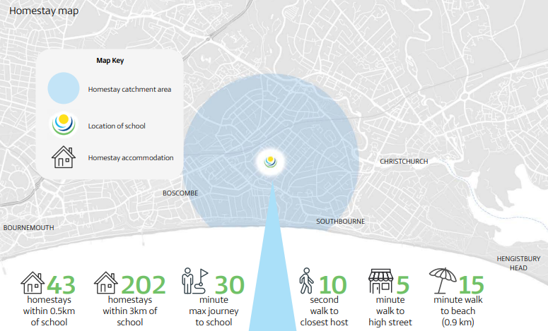 เรามีเจ้าหน้าที่ที่พักโดยเฉพาะที่จัดหาที่พักให้กับนักเรียนอายุ 10 ปีขึ้นไป และคัดเลือกโฮมสเตย์ที่อยู่ห่างจากโรงเรียนโดยการเดิน 30 นาทีหรือการเดินทางโดยรถบัสเพียงระยะสั้นๆ เจ้าบ้านที่จัดหาที่พักให้กับนักเรียนอายุต่ำกว่า 18 ปีจะต้องผ่านการตรวจค้นจากตำรวจ นักเรียนผู้ใหญ่ที่อายุต่ำกว่า 18 ปีที่เดินทางโดยลำพังจะพบกับเจ้าหน้าที่สวัสดิการของเราสัปดาห์ละครั้งเพื่อพูดคุยเกี่ยวกับปัญหาใดๆ ที่นักเรียนประสบในการปรับตัวเข้ากับชีวิตในอังกฤษ นักเรียนอายุ 18 ปีขึ้นไปสามารถเพลิดเพลินกับความสะดวกสบายของห้องส่วนตัวได้ตลอดทั้งปี หากคุณมีข้อกำหนดด้านอาหารพิเศษ เช่น แพ้กลูเตน มังสวิรัติ และไม่มีแลคโตส เราสามารถจัดหาเจ้าบ้านที่สามารถตอบสนองความต้องการเหล่านี้ได้ โดยจะมีค่าใช้จ่ายเพิ่มเติมต่อสัปดาห์