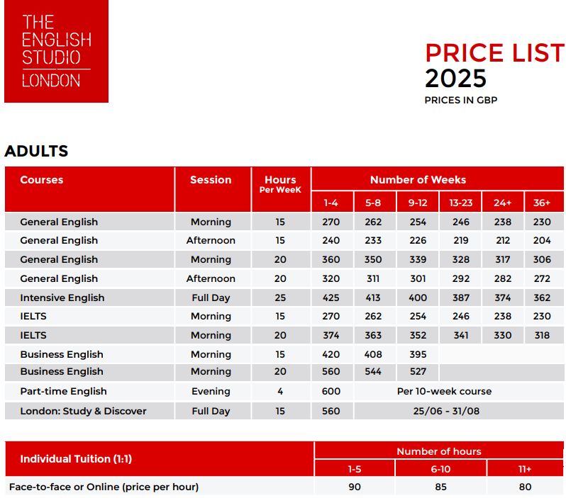 หลักสูตรภาษาอังกฤษในลอนดอนสำหรับผู้เรียนที่มีความทะเยอทะยาน คุณสามารถเลือกได้จากหลักสูตรภาษาอังกฤษทั่วไปและการเตรียมสอบ IELTS ที่หลากหลายเพื่อช่วยให้คุณบรรลุเป้าหมายในชีวิต ที่สำคัญ โปรแกรมของเราจัดขึ้นในสถานที่ที่ยอดเยี่ยมซึ่งคุณสามารถเรียนรู้และทำความรู้จักกับเพื่อนจากทั่วทุกมุมโลก คุณสามารถเลือกได้จากหลักสูตรภาษาอังกฤษในช่วงเช้าและช่วงบ่าย โดยมีชั้นเรียนสำหรับภาษาอังกฤษทุกระดับตั้งแต่ระดับเริ่มต้นไปจนถึงระดับสูง