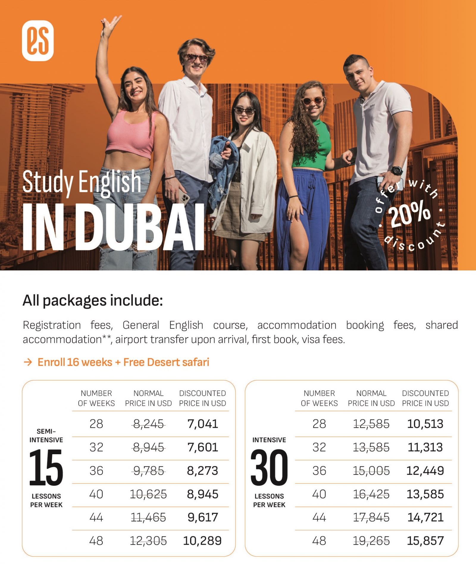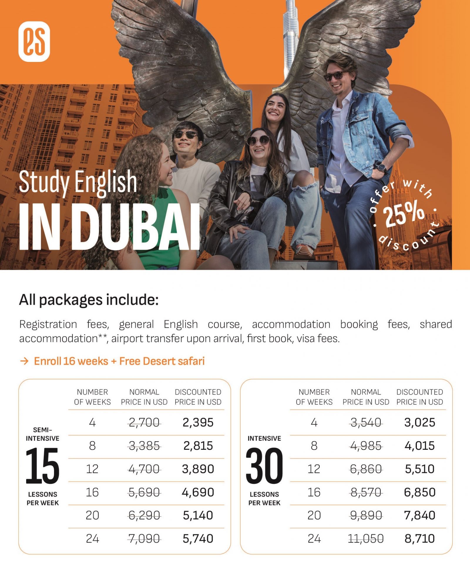 โปรโมชั่นลด 25% และแถมทริปทะเลทราย สำหรับนักเรียนที่สมัครตั้งแต่ 12 สัปดาห์ขึ้นไป |