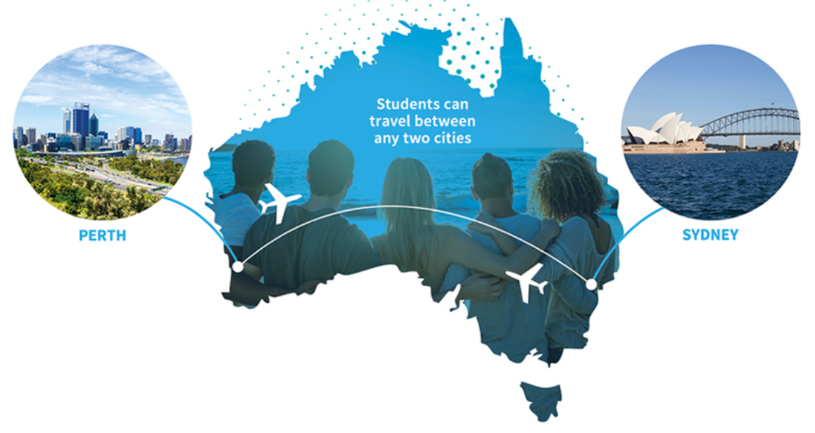 การเดินทางไปออสเตรเลียเป็นการผจญภัยที่ยอดเยี่ยม และด้วยสถานที่ตั้งทั้งสองแห่งของเรา คุณจึงมีโอกาสได้สัมผัสกับความมหัศจรรย์ที่ออสเตรเลียมอบให้ ด้วยโรงเรียนบนชายฝั่งตะวันออก - เพิร์ธ (Perth) และชายฝั่งตะวันตก - ซิดนีย์ (Sydney) คุณจะได้มีโอกาสใช้ชีวิตในสองเมืองใหญ่และเพลิดเพลินไปกับวิถีชีวิตแบบออสเตรเลีย โปรแกรม Airlink ของเรามอบตั๋วเครื่องบินฟรีระหว่างสองโรงเรียน ช่วยให้คุณเพลิดเพลินไปกับประเทศที่สวยงามของเรา