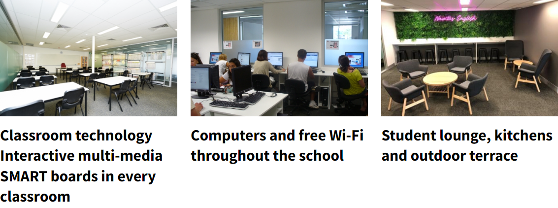 Navitas English ตั้งอยู่ในอาคารทันสมัยสูง 15 ชั้น ครอบคลุมพื้นที่ชั้นเดียวของอาคารที่สวยงามตระการตาแห่งนี้ มีพื้นที่พักผ่อนและโซนพักผ่อนสำหรับนักเรียนหลายแห่ง จึงเป็นสถานที่ที่สมบูรณ์แบบสำหรับการใช้เวลานอกชั้นเรียนกับเพื่อนๆ นอกจากนี้ยังมีอุปกรณ์ทำครัวครบครันและกิจกรรมต่างๆ เช่น ปิงปอง